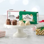 A decadent holiday duo of refreshing chocolate and peppermint, these creamy truffle centers are dipped in See’s smooth milk chocolate . Available for a limited time only. Includes 6 pieces per box.